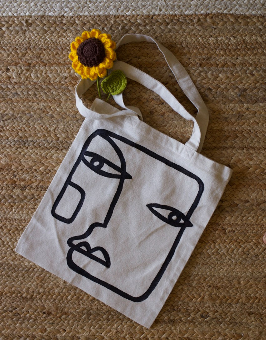 Handwash the bag. When ironing, put a white sheet of paper on the design and iron over it.